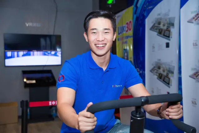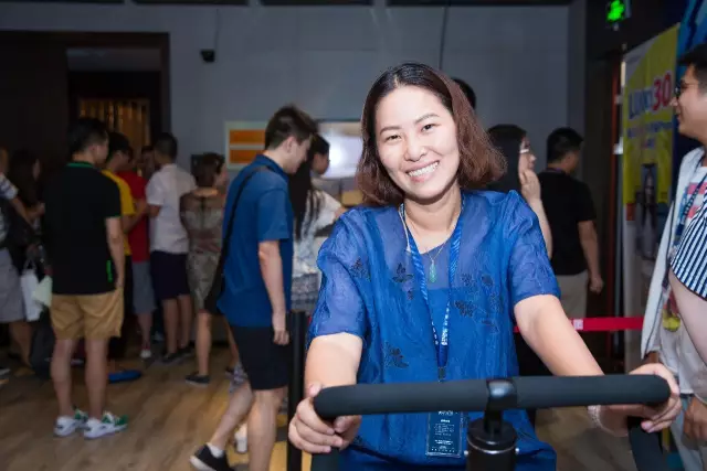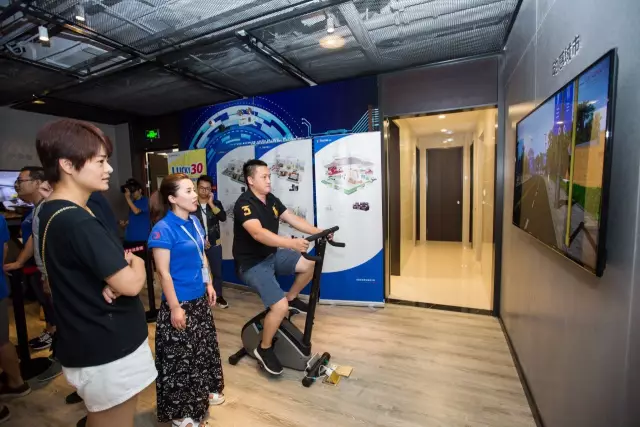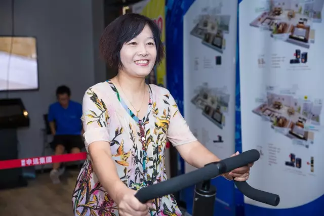 参观者现场体验动感单车的乐趣