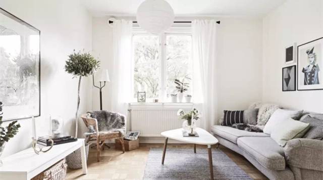 白色窗帘+灰色布艺沙发+浅灰色地毯=简单宜家风格